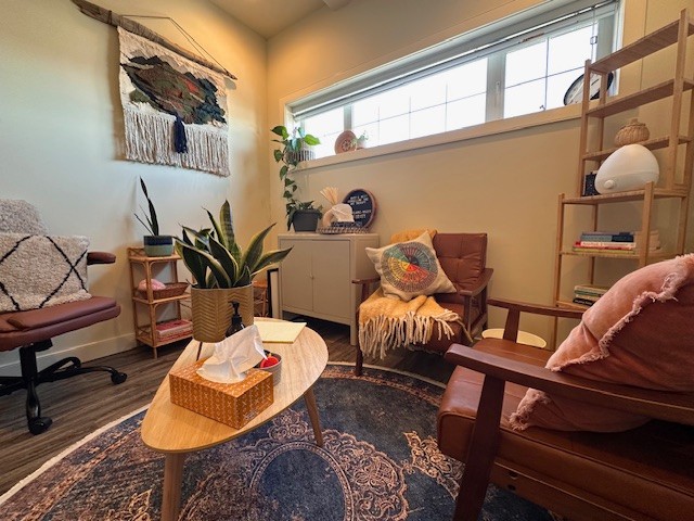 Located on historic Elma Street in Okotoks AB. No parking on site but there is free street parking along Elma or Elizabeth Street. There are several stairs to access this office, so virtual sessions are available if this is inaccessible.