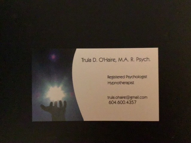 Facility: Trula O’Haire Registered Psychologist Online (in-person available on request. Hypnotherapy is only available in-person )
